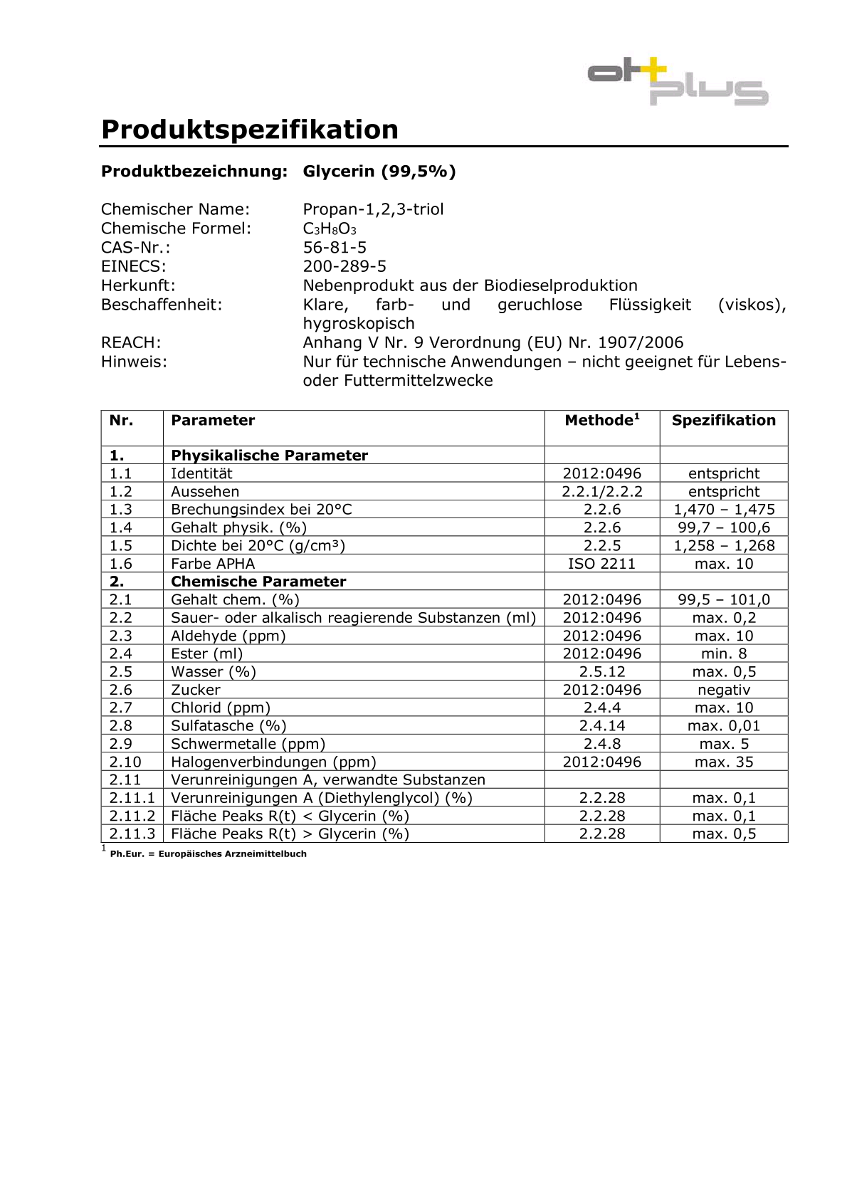 Beschreibung Anwendungsgebiete Glycerin: